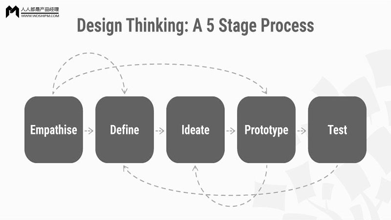 根据d.school的研究,设计思维的五个阶段如下:共情、确定(问题)、形成概念、制作原型和测试,让我们仔细看看设计思维的五个不同阶段。
